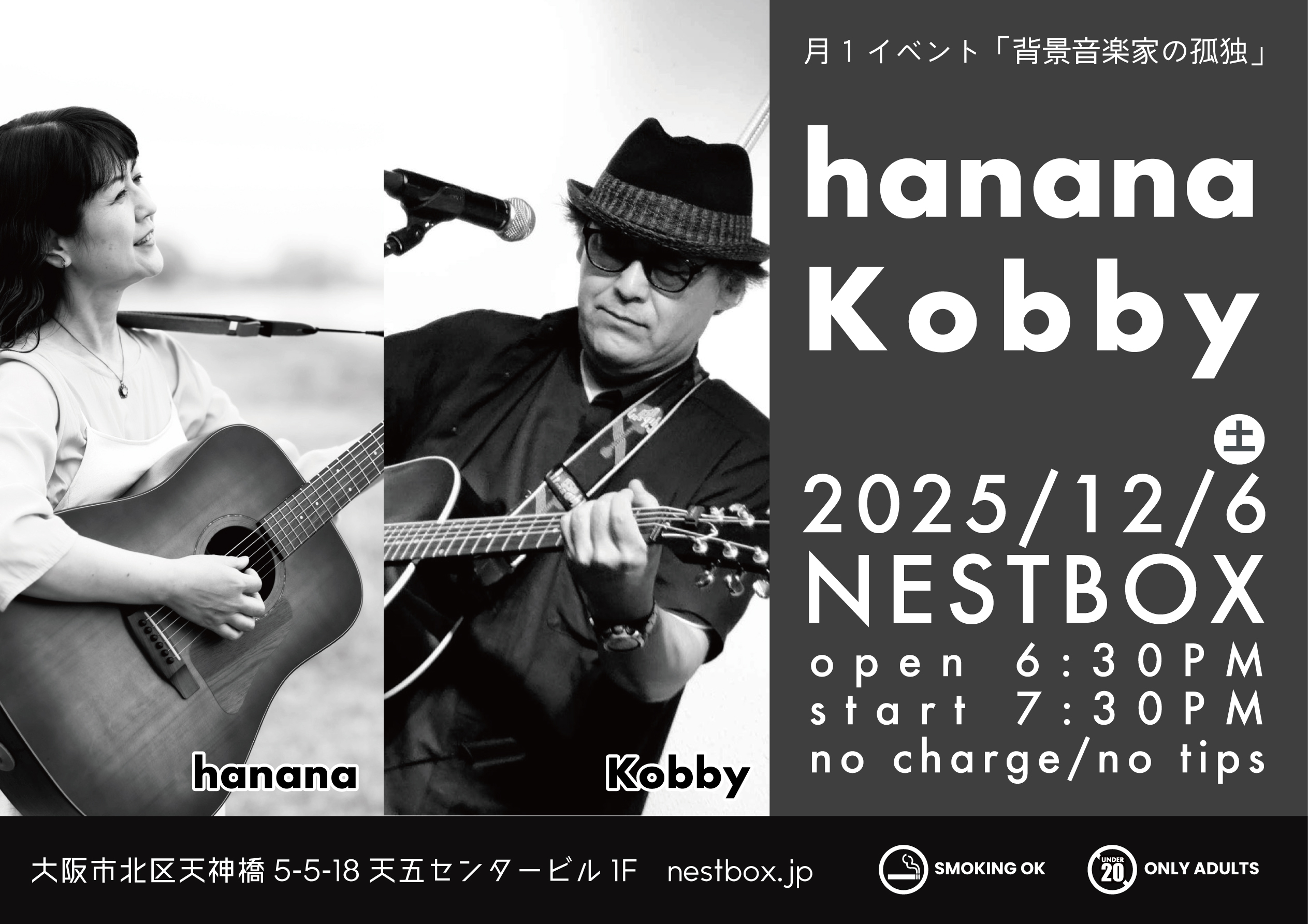 A live show featuring solo vocal-and-guitar performances by hanana and Kobby.